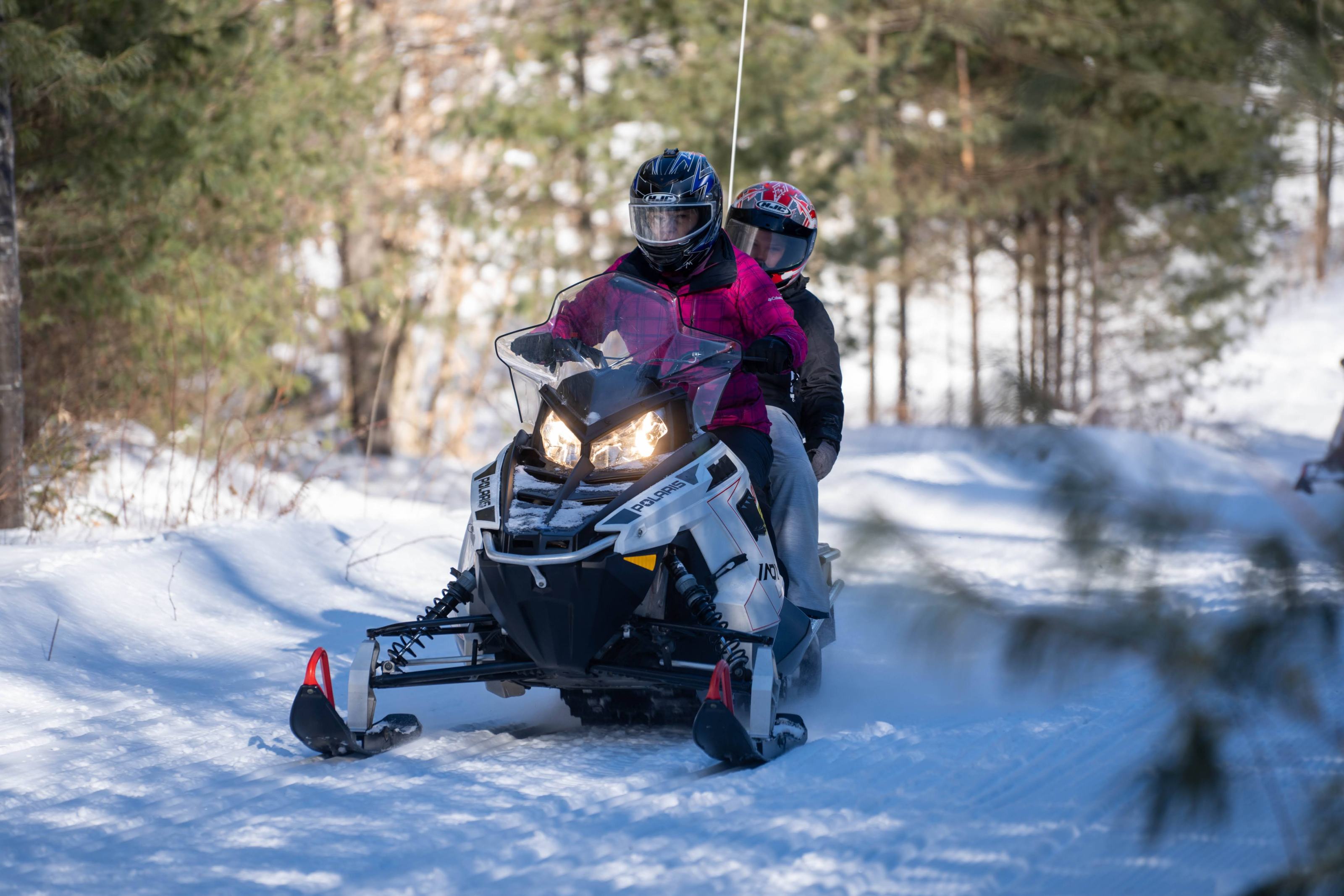Come ready to play in the snow. You will need boots, snow pants, a coat, and gloves. Snowsuits & boots are available for rent at an additional charge. We supply full-face shielded helmets for everyone at no additional cost. Our snowmobiles accommodate 2 persons or 350 lbs. It is required you to arrive + check in 45 minutes prior to your scheduled tour. Please be dressed and ready to snowmobile.